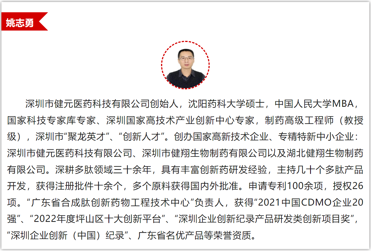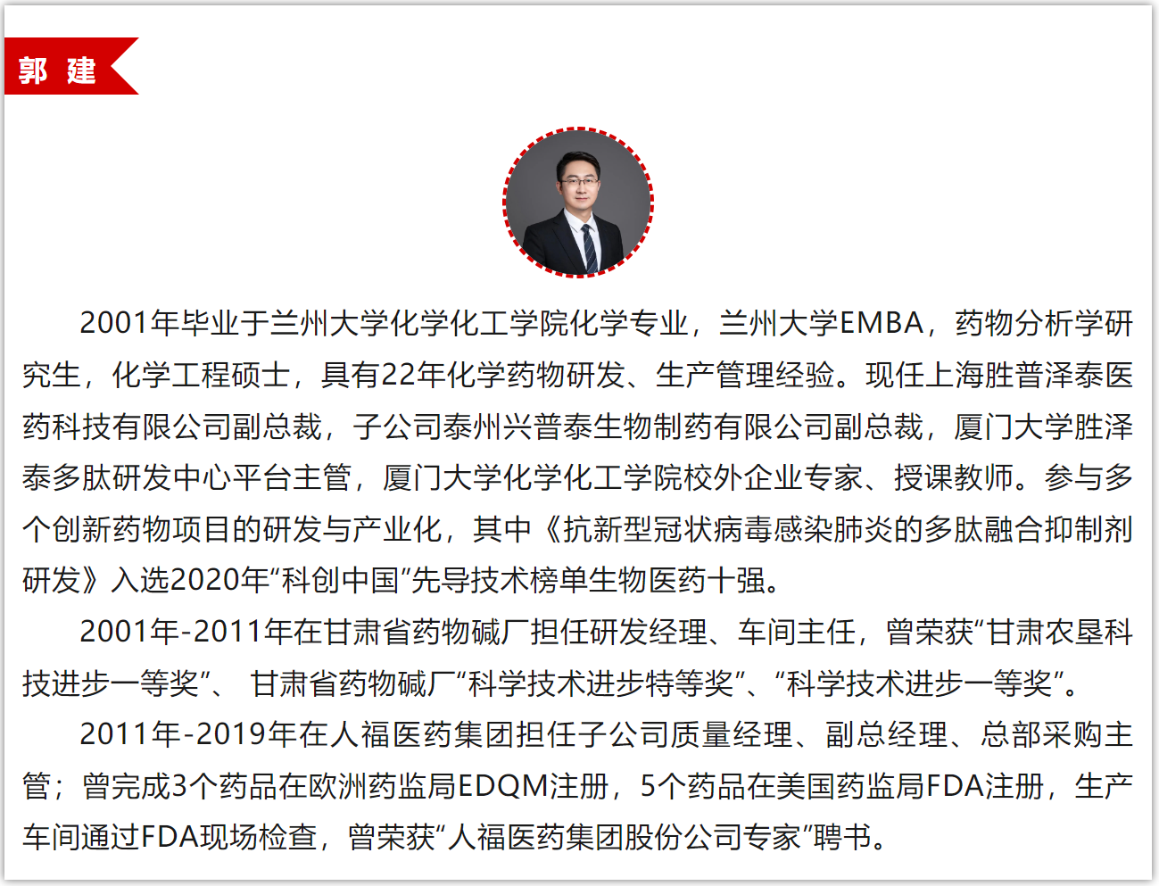 11:10-11:40 | 吳海剛 | 多肽API供應(yīng)鏈的機(jī)遇和挑戰(zhàn) | |