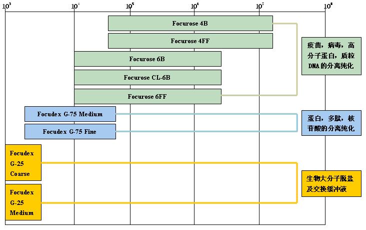 凝膠過濾介質(zhì)分級分離范圍(球蛋白Da)