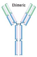 用人IgG的恒定區(qū)取代小鼠IgG的恒定區(qū),保留鼠單抗的可變區(qū)序列,形成一個人-鼠雜合的抗體。例如:Idec?pharmceutical,Genentech的小鼠抗CD20抗體,含人IgG1恒定區(qū),用于治療B淋巴瘤。