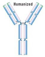 取其與抗原直接接觸的那段抗體片段(互補決定區(qū),CDR)與人的抗體框架嫁接,經(jīng)親和力重塑,可維持其特異性和大部分的親和力,同時幾乎完全去除免疫原性和毒副作用。人源化抗體成功的例子:Herceptin,Genentech公司的抗HER2/neu抗體,用于治療乳腺癌。是人表皮生長因子的受體-2(Her-2)重組DNA衍生的人源化抗體,95%的人源和5%的鼠源。