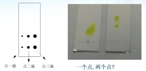 ????? 2. 點(diǎn)的斑點(diǎn)較小,展開的TLC分離度好。