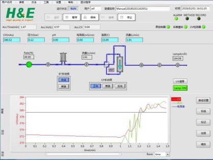 主界面直觀形象,便于操作,其分為系統(tǒng)功能區(qū)、過程控制區(qū)及狀態(tài)顯示區(qū),實(shí)時(shí)記錄參數(shù)變化,并生成圖譜。