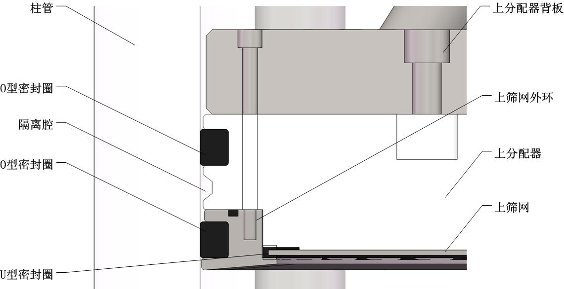 篩網采用U型密封圈進行密封,U型密封圈的內表面可包裹篩網的上下表面及側面,有效防止漏膠,并且U型密封圈的體積很小,可有效防止篩網變形。