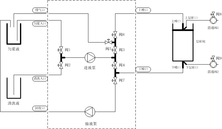 裝柱機作為獨立的操作系統,由PC機、PLC、電磁閥、氣動隔膜泵,氣動隔膜閥,氣源三聯體,流量調節(jié)閥等組成。