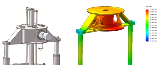 通過大量的仿真計算,我們得出了可靠的橫梁結構設計,保證設備耐壓5bar時,柱頭變形不超過2mm。