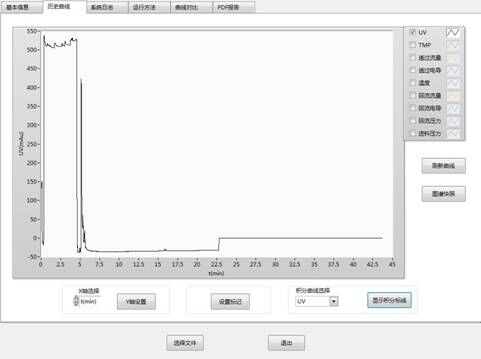 6) 可根據工藝要求在系統中靈活配置流量、溫度、電導率、pH、UV等在線檢測器,實時記錄運行曲線;