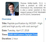 主講人:Thomas Müller-Sp?th, COO of ChromaCon 內(nèi)容:Purification by MCSGP - High yield and High Purity with Cost Savings 時間:2018年4月17日,星期二,北京時間22:00(即10:00 AM Eastern Daylight Time) 時長:1小時