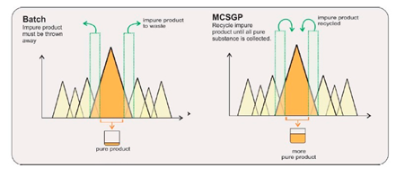 ????? MCSGP(Multicolumn Countercurrent Solvent Gradient Purification)用于精純環(huán)節(jié),無(wú)需通過(guò)耗時(shí)的實(shí)驗(yàn)設(shè)計(jì)(DoE)確定工藝條件,可有效克服典型SMB(模擬移動(dòng)床)僅適用于二元分離、無(wú)法實(shí)現(xiàn)線性梯度的缺點(diǎn)。