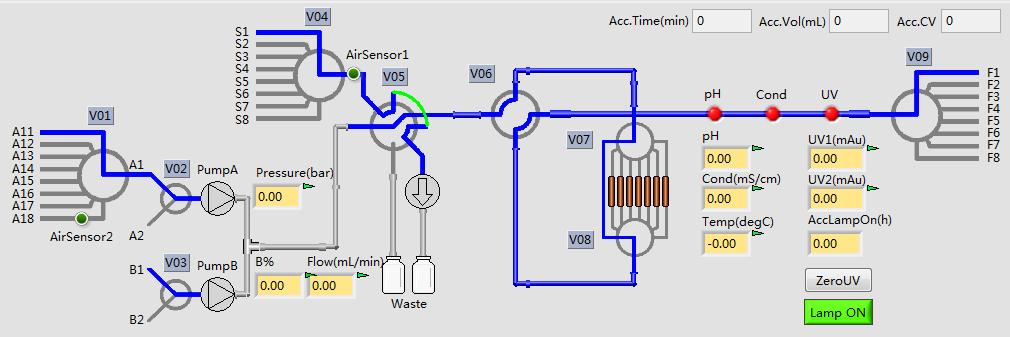 2、A泵入口最多可達8路緩沖液;