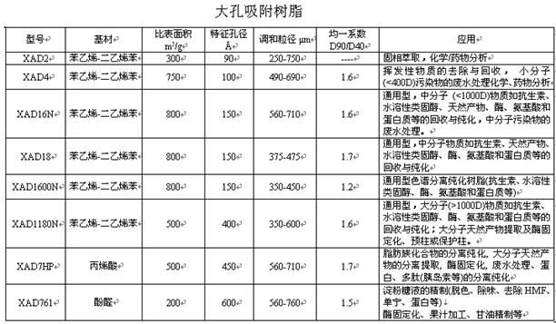 ??? 羅門(mén)哈斯XAD系列大孔吸附樹(shù)脂分別是以苯乙烯-二乙烯基苯、丙烯酸和酚醛為基材,分為非極性樹(shù)脂、弱極性樹(shù)脂和極性樹(shù)脂。根據(jù)樣品的極性區(qū)別,在醫(yī)藥及天然產(chǎn)物領(lǐng)域有著廣泛的應(yīng)用。