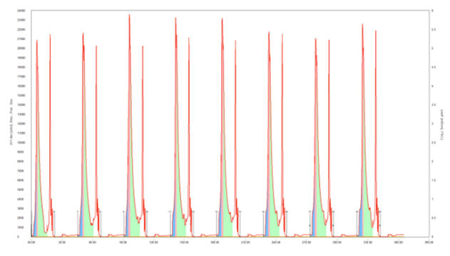 MCSGP的每個(gè)cycle僅收集2次(per cycle / per switch),而單柱層析過(guò)程的各組分需要分段收集、送檢,因此采用MCSGP,可使HPLC檢驗(yàn)工作量顯著降低。