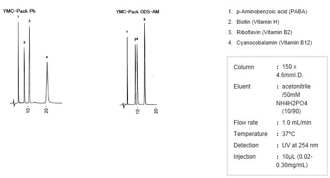 ODS和苯基柱分離水溶性維生素時(shí)候的保留時(shí)間有明顯的差異。